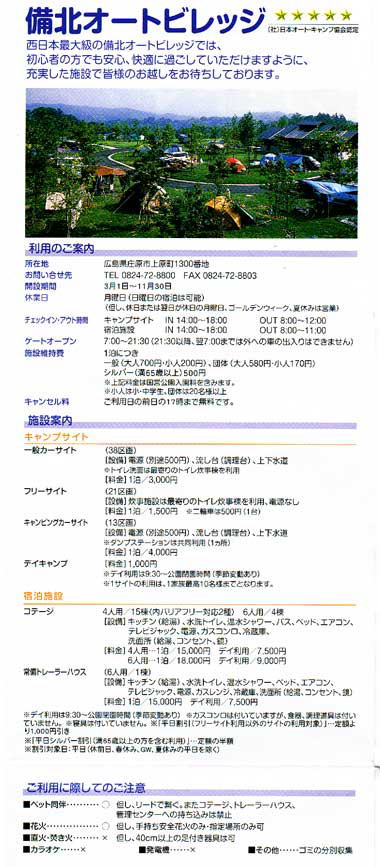 | 備北オートビレッジ (TEL 0824-72-8800) |
